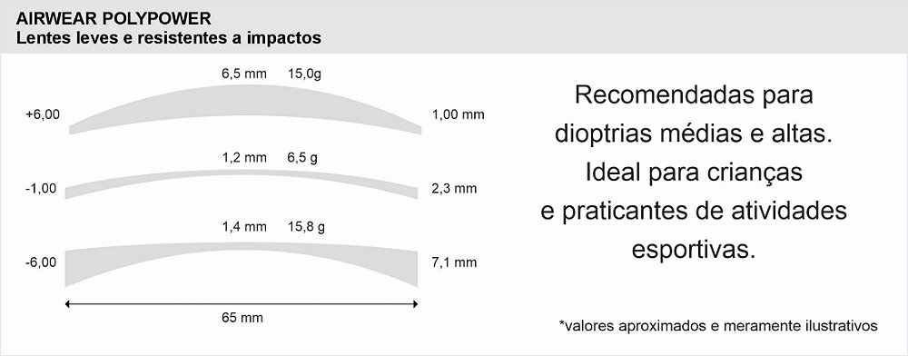Material Airwear Polypower índice 1.59 (Médio índice)
