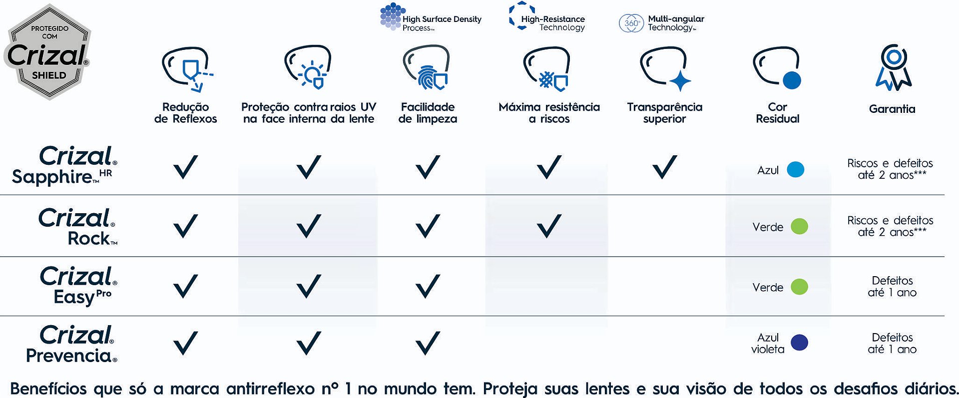 Compare os benefícios deste Crizal