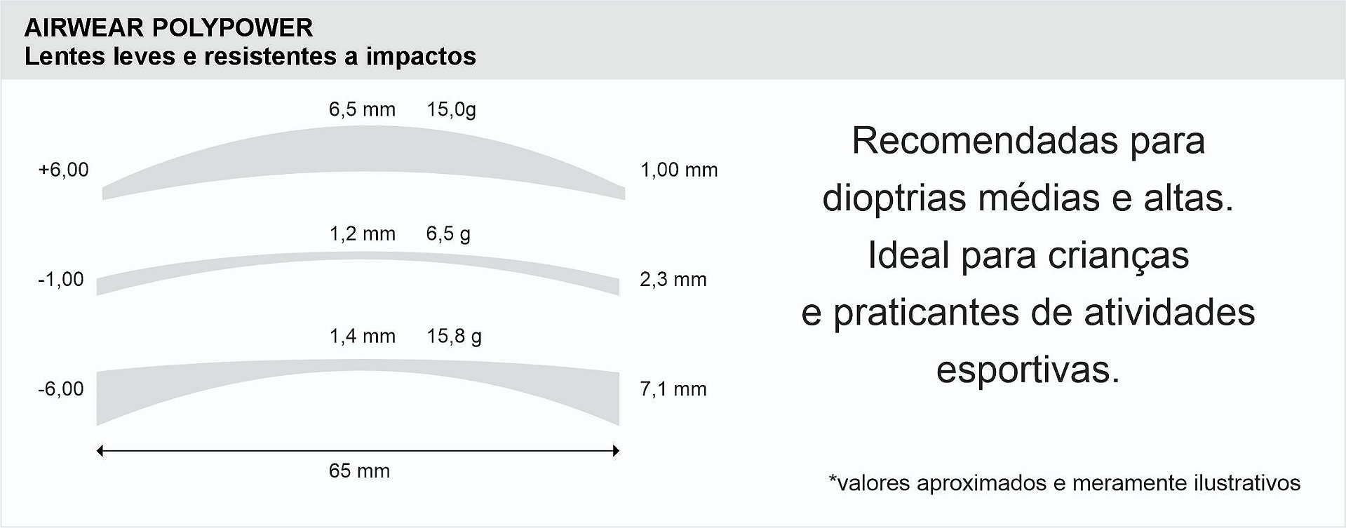 Orma/Airwear (Policarbono): +6.00 a -10.00;