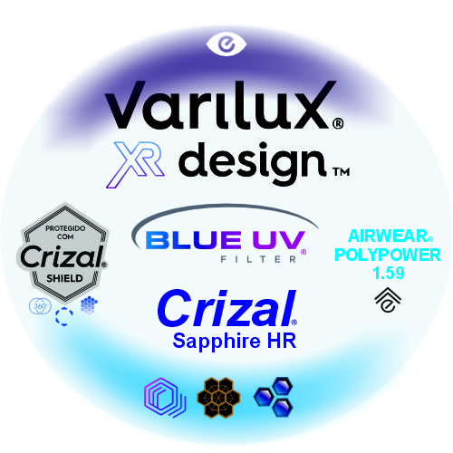 Varilux XR Design Airwear Polypower Blue Uv Crizal Sapphire HR