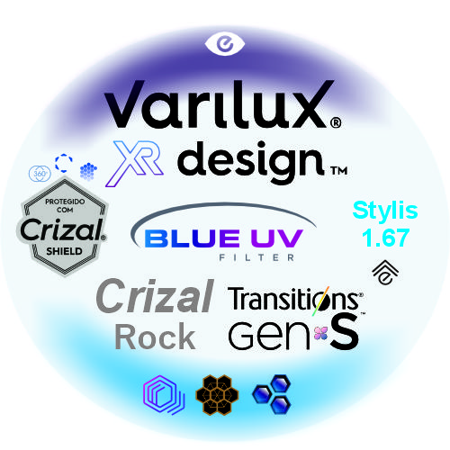 Varilux XR Design Stylis 1.67 Blue Uv Crizal Rock Transitions