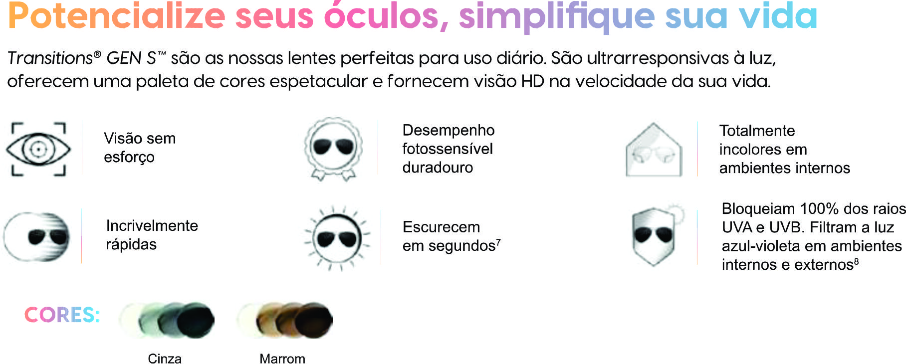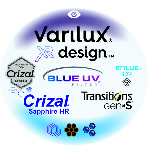 Tratamentos: Crizal Sapphire HR (+ transparência); Blue UV (proteção contra raios de telas)